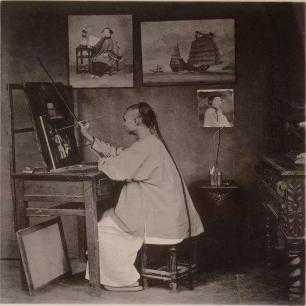 清朝一位画师正在创作,看样子是西洋油画,古代没有相机之前,画师是个非常牛的职业。