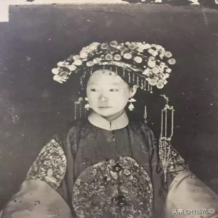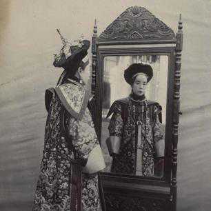1赫舍里氏身穿蟒袍,站在镜子前留影纪念