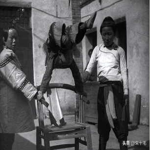他们所有人的辫子都被绑在一起,而上面骑马的人却只是用手拿着另一个人的辫子,就可以行走了。