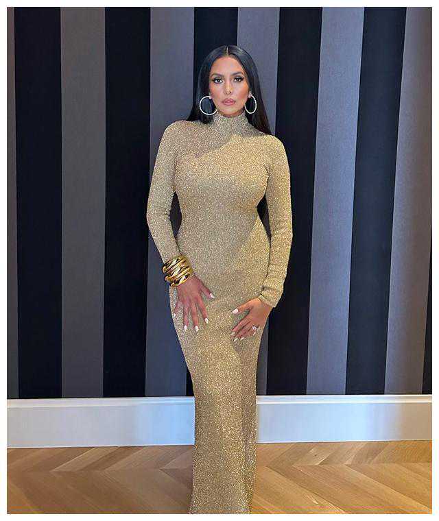 科比遗孀瘦了太多!瓦妮莎穿小金裙美成女神,这是瘦了好几十斤啊