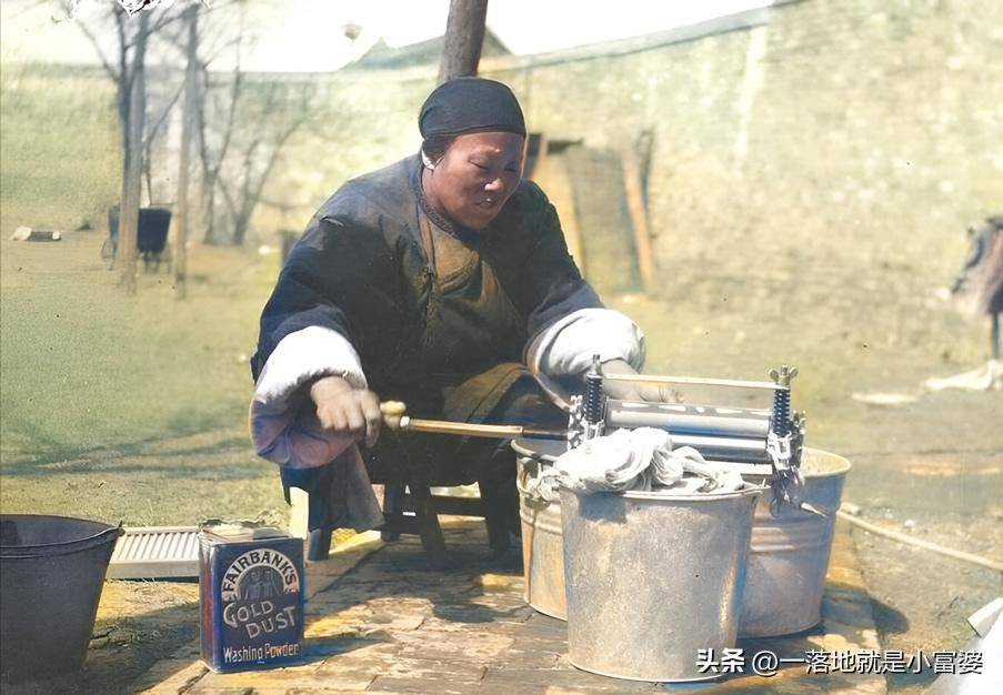 17这位妇女是大户人家的女佣,她正在为东家洗衣服。