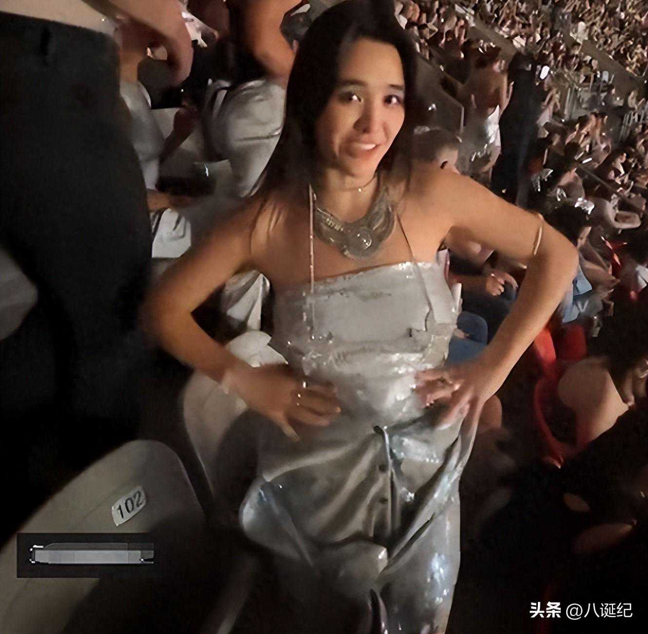 张敏钧本是坐在观众席的普通粉丝,她身穿简单休闲的白色吊带衫和蓝色牛仔裤,与周围歌迷混在一起。