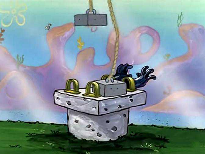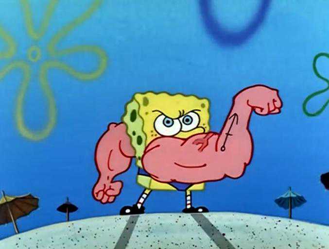 来到比赛现场,大家都把锚抛出了几十米的距离,轮到海绵宝宝的时候,他开始慌了,自己这身假肌肉根本拿这巨大的船锚没有办法,但看着观众们都在大声喝彩,自己下不了台,只能硬着头皮上了,他鼓励着自己,居然开始觉得自己真的是大块头海绵宝宝了。