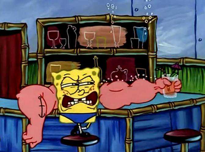 心情大好的海绵宝宝决定请大家喝果汁,这时候大家都在围观海绵宝宝,他也正在向大家吹嘘着自己是怎么锻炼的(哈哈)。这时珊迪也来到了这里,看着眼前的大块头,珊迪感觉很惊讶。