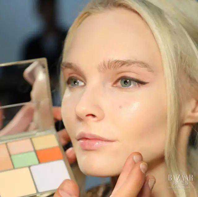 青紫色眼圈可就不那么好遮住了,这时候可以先用蜜桃色或是肤色遮瑕进行眼部打底,然后用橘色遮瑕对还比较明显的青紫色部分进行局部修正,再打上底妆,才能让青紫色眼圈隐形。