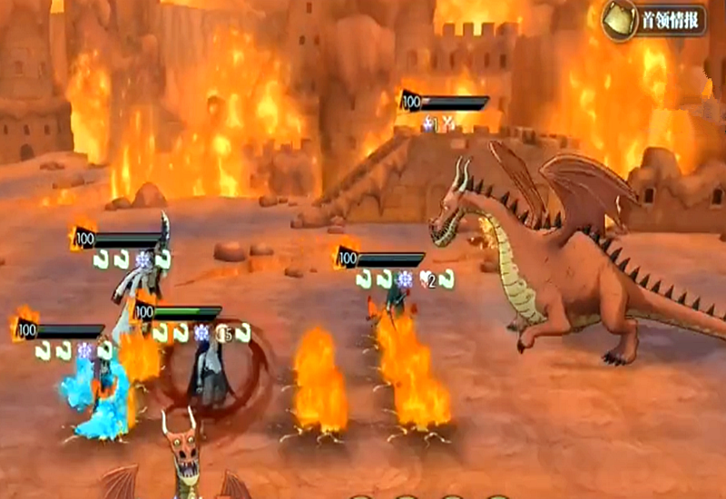 再一个就是火龙会对地面残留火焰,那个火焰会灼烧站在上面的角色,且伤害超高。应对方法就是刷脸看运气,不能输出全站在火焰上,然后尽量两三回合秒掉。