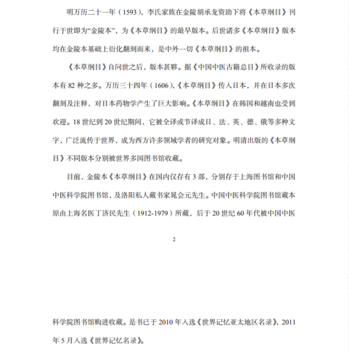 中国中医研究院藏金陵本《本草纲目》公开文献资料截图