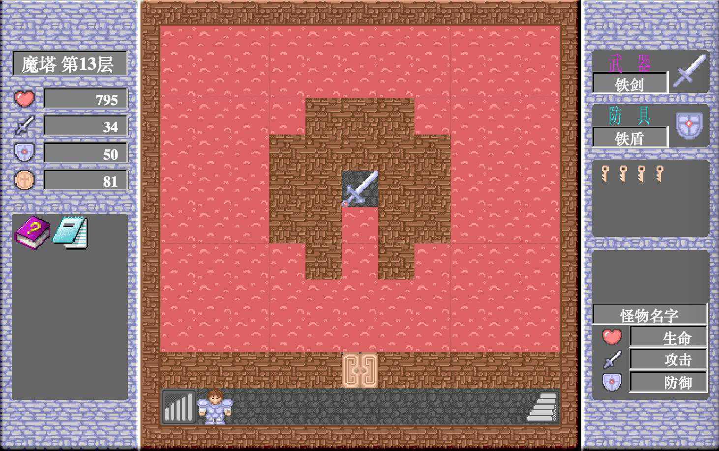 魔塔的剧情是比较狗血的勇士为救公主斗恶龙打魔王,而在这个过程中你需要通过小怪来获得金币来升级你的攻击防御。而通过游戏中提供的怪物手册你可以看到怪物的血量、攻击、防御和金币;攻击机制是回合制,只有你的攻击打过对方的防御才能造成伤害。