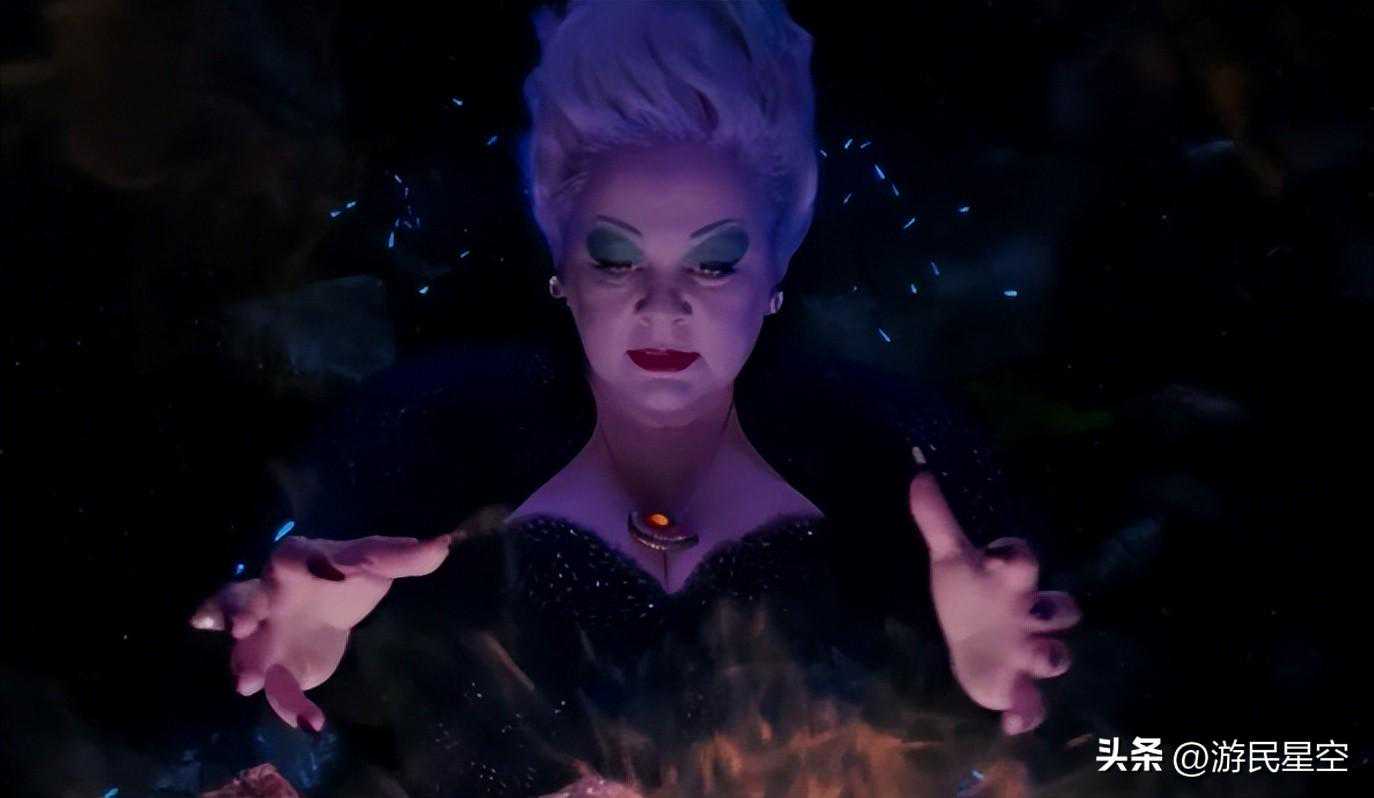 而另一方面,电影似乎依旧想套搬动画的风格。在片中饰演反派乌苏拉的梅丽莎·麦卡西曾提名过奥斯卡最佳女主,但可惜的是她并未在电影中奉献惊人的演技,反倒因无法摆脱动画风格的束缚,电影中的她所做的表情与动作都进行了夸张化的处理,这或许在难以表现角色内心戏的动画中无可厚非,但若是真人版还来这一套,便难免令人觉得流于表面。