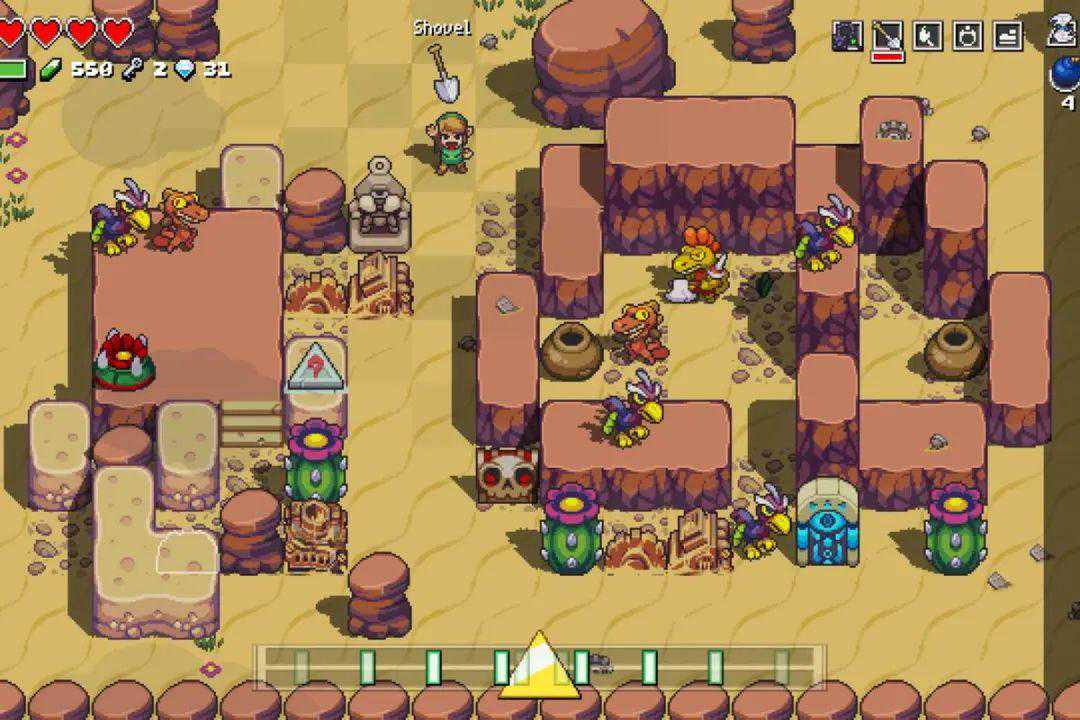 《节奏海拉鲁》就是这样一款,将《塞尔达传说》和《节奏地牢》相结合的作品。游戏中包括走路、战斗在内,都需要根据其音乐的节奏来点按按键。这就非常考验我们玩家的节奏感,一旦在战斗中和音乐“失去同步”,就会导致攻击或是防御的失败,从而劣势尽显。
