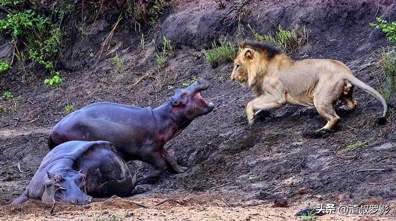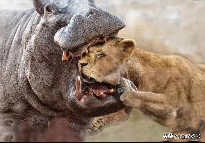 即使是狮子面对成年河马也会退避三舍,只有实在饿极了才会下手,河马的皮肤厚达40-50毫米,狮子很难咬穿。