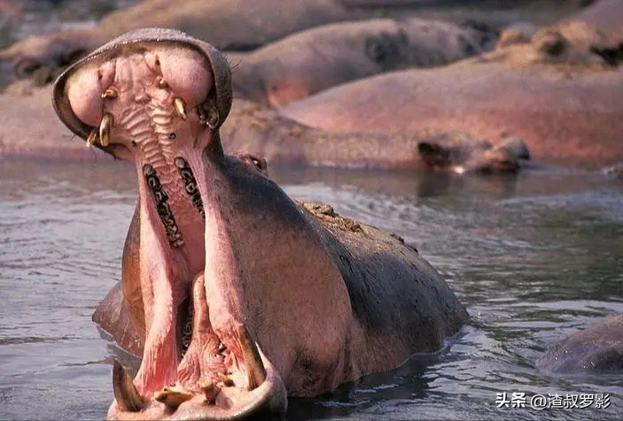 这张大嘴蕴含着惊人的力量,河马拥有陆地上最强的咬合力,高达4000公斤,是狮子的7倍。
