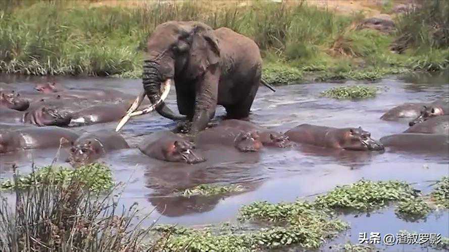 河马的克星:巨象王者非洲大草原上,体型巨大的河马总让人们误以为它是这片土地的“霸主”,它那如同坦克一般结实厚重的身躯,展现出爆发力和力量的完美结合。