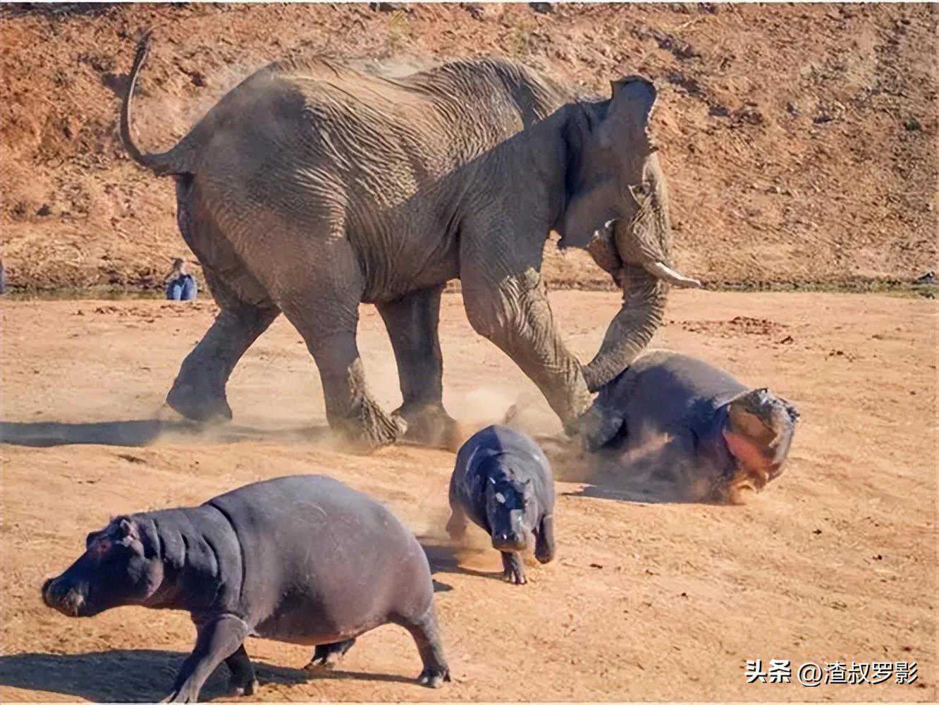 野生动物专家表示,非洲象的力量是河马的至少10倍,所以河马根本不是对手,被踩后要么重伤,要么当场毙命。