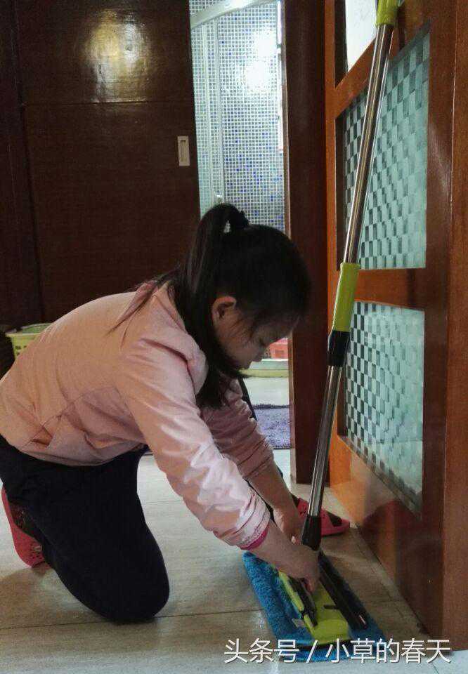 朵拉负责拖地、擦家具上的灰尘,姐姐就清洁玻璃。朵拉平时没有时间做家务,这干起来还有模有样蛮快的。