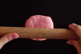 4.每种颜色取出1汤匙的量揉成约20厘米的长条,将每种颜色的长条小心扭在一起。