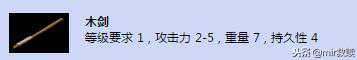【木剑】等级要求1,攻击力2-5,重量7,持久性4