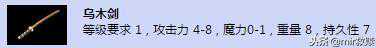 【乌木剑】等级要求1,攻击力4-8,魔力0-1,重量8,持久性7