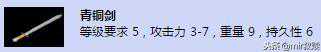 【青铜剑】等级要求5,攻击力3-7,重量9,持久性6