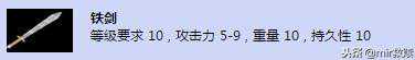 【铁剑】等级要求10,攻击力5-9,重量10,持久性10