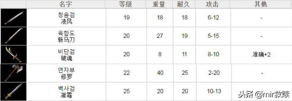 初期的通用武器就到此为止了,之后便是各职业的专属武器,当然后期武器中也有通用武器,因为文章主题的关系,这儿我们不做介绍了。