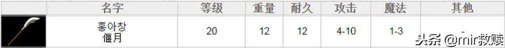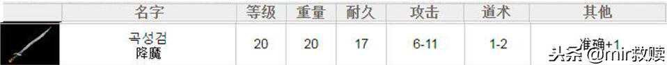 需要等级40级,重量26,持久10,攻击6—13,魔法2—10