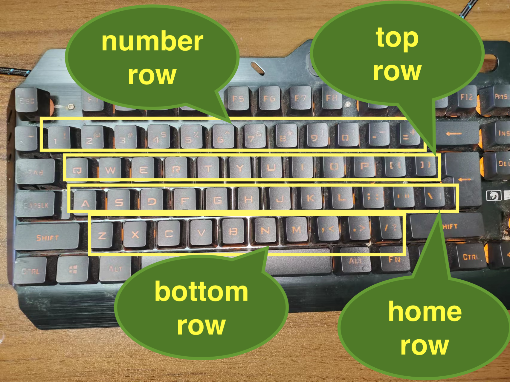 Homerow中间行,Toprow上面行,Bottomrow下面行,Numberpad数字,Allletters全键盘。这样可以根据课程进行不同区