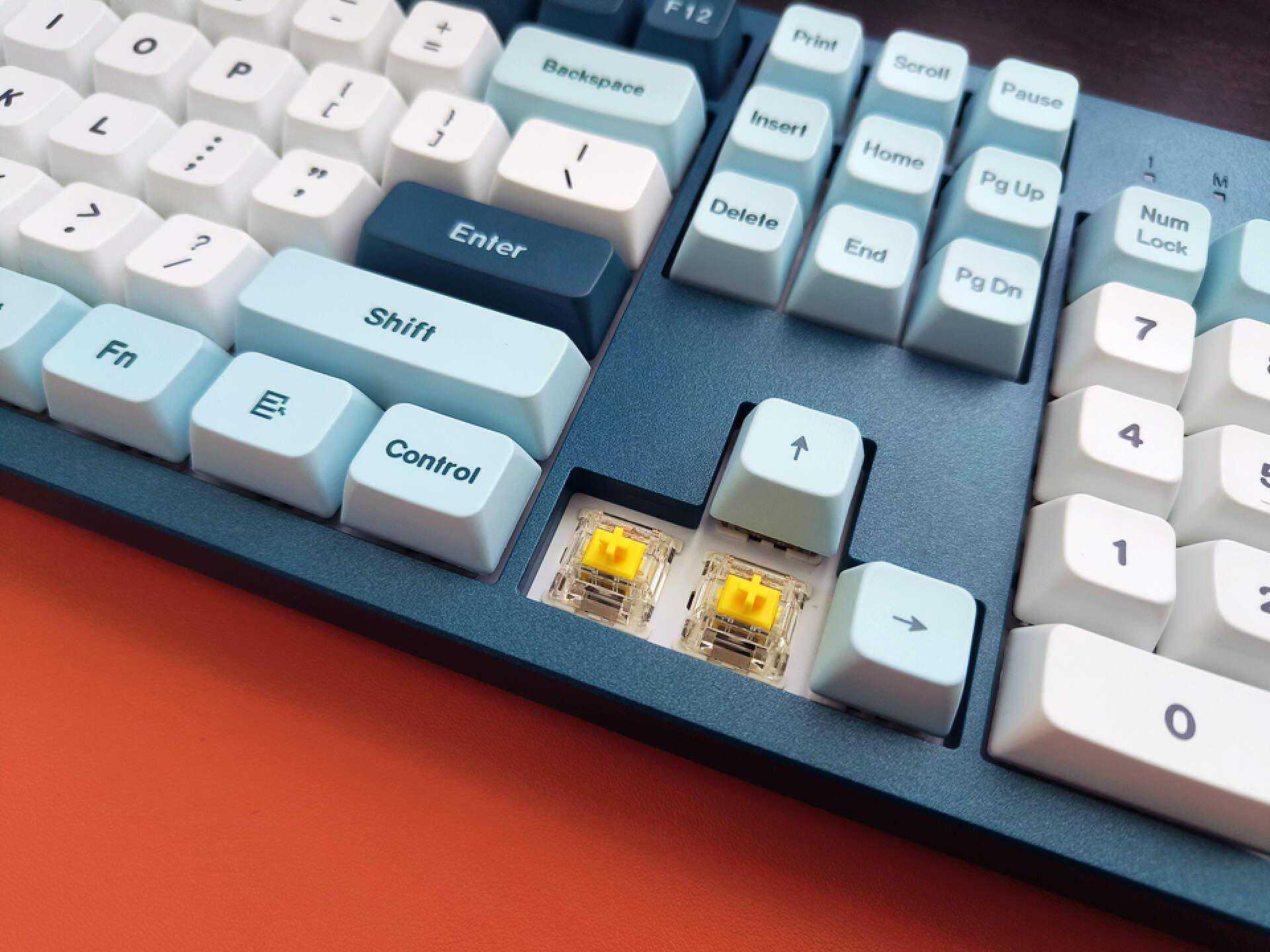 MKey城堡风格机械式键盘的轴体值得一说,它是采用了预先上油润滑的轴体,拥有红轴、黄轴及茶轴可选,个人选择的是黄轴,无论是视觉上还是手感上都很亮眼。它还支持Kailh热插拔功能,能够兼容3pin和5pin的轴体,也兼容Cherry轴体,对于喜欢DIY的朋友来说这个非常友好,后续可玩性比较强。