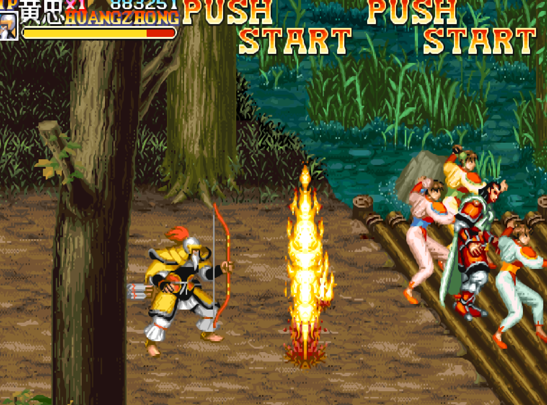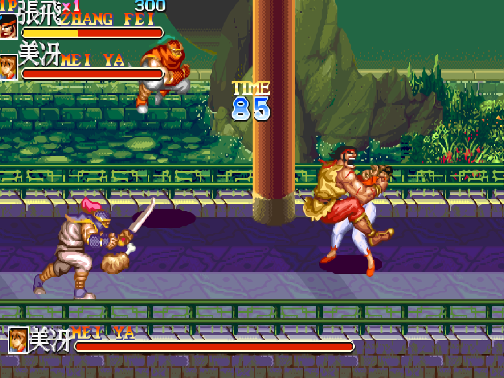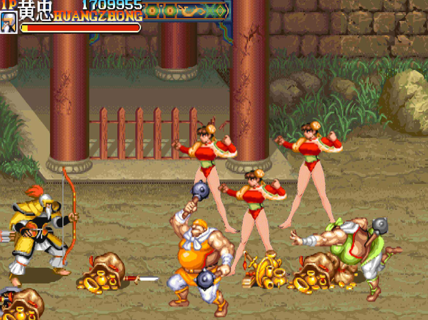 在遇到三美的时候,考验的就是玩家的走位,以及抓人扔出去的准确度。选黄忠最怕遇到的就是这些敏捷型的敌人,还没发射就被踢翻了。而最最让玩家们抓狂的操作,绝对是: