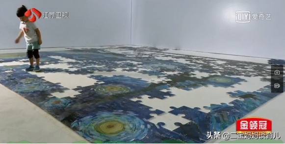 节目组为了考验这位“拼图小达人”,为孩子准备了一副500片的梵高的《星空》,这幅图难就难在有很多的同系色块,非常的难以分辨。