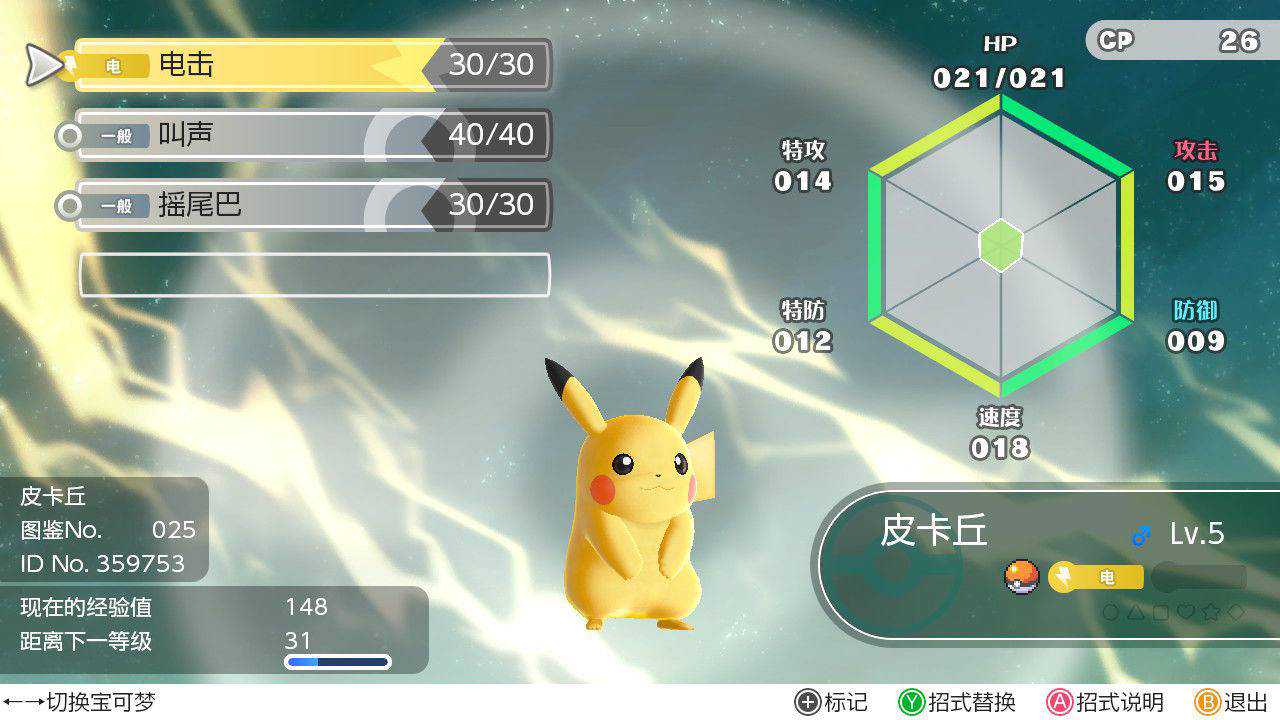 另外一个从《PokémonGO》吸取的功能就是CP值。此前游戏中描述宝可梦的能力需要众多数字来决定,甚至还要玩家自己去计算,在《皮卡丘\伊布》中只要简单看CP值的高低就行了。