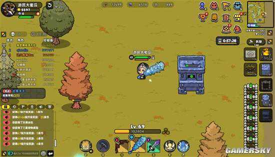 这洞天福地正是《沙盒与副本》前几日更新推出的跨服地图秋枫平原。相较于方正规矩的英勇小镇,秋枫平原的地图尺寸更大,地形也更加复杂,多了不少适合藏建筑的犄角旮旯,最重要的是,任何玩家在秋枫平原内都没有死亡惩罚,不爆装备,不掉等级,撸几分钟树升到60级就能进图,非常适合佛系玩家和新人在游戏前期farm。
