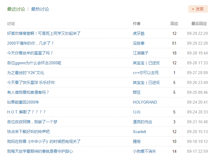 在“我们生活在2000s”小组里,2000年被形容为“泛着金色的光芒,永远没有烦恼,每天就开开心心的”,“那时候奥运会开到家门口,那时候还和暗恋的男同学发短信,那时候的风都是温柔的”。