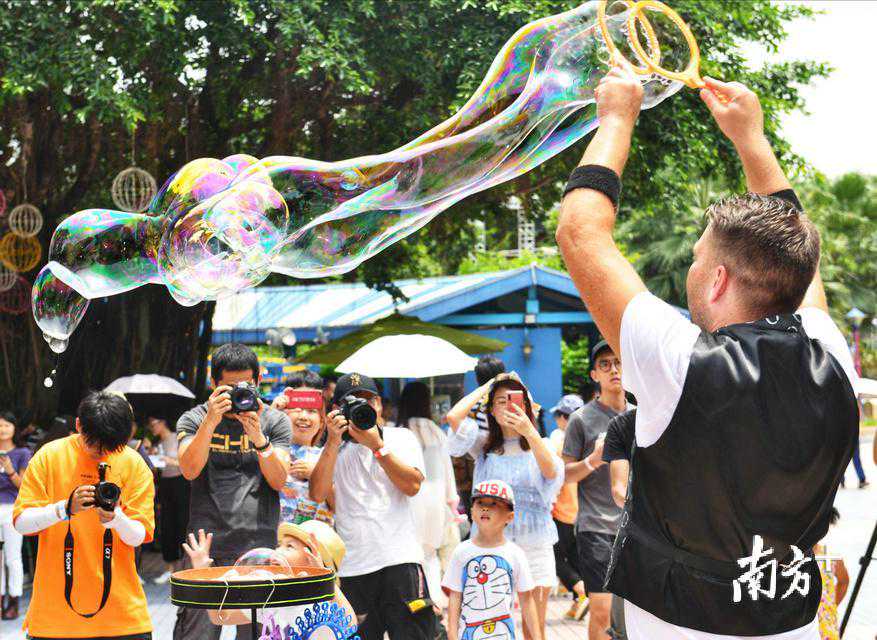 继浪漫的“欢乐万花节”和激情的“欢乐尖叫节”后,7月13日,广州长隆正式拉开“泡泡狂欢节”的序幕,奇幻泡泡秀、泡泡糖主题巡游、梦幻泡泡水晶屋、云朵泡泡机、泡泡音乐舞池……长隆欢乐世界变身一座彩色的“泡泡之城”,整个活动持续至9月1日。