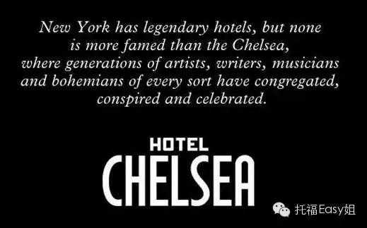 这里就是位于纽约曼哈顿中心地带的切尔西旅馆,在它周围,剧场、画廊林立,《》形容它的地理位置就像“一位贵妇置身在一场派对的中心,四周都是她社交圈里的好友,无需多言,只需尽情享受”。