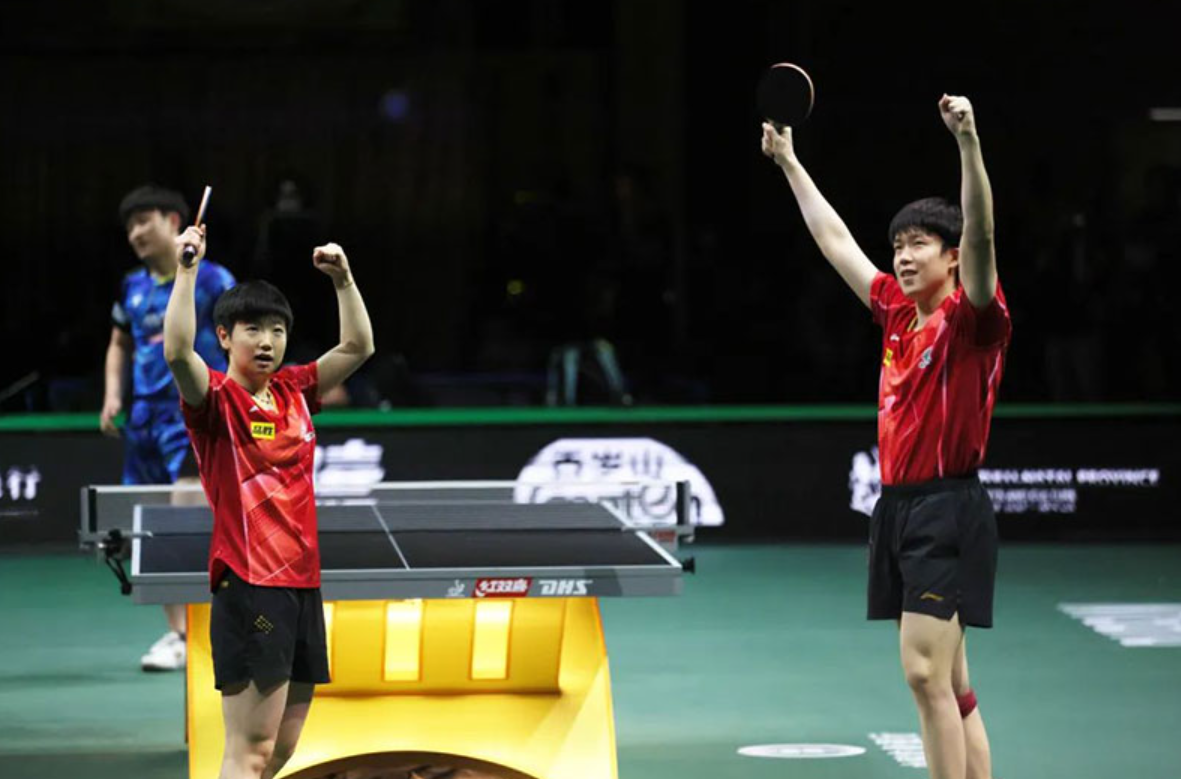 决赛开始,两对组合各展所长,你来我往,比分紧咬。林高远和王曼昱凭借着更为稳健的发挥,连下两城,14:12和11:9,他们似乎已经看到了胜利的曙光。