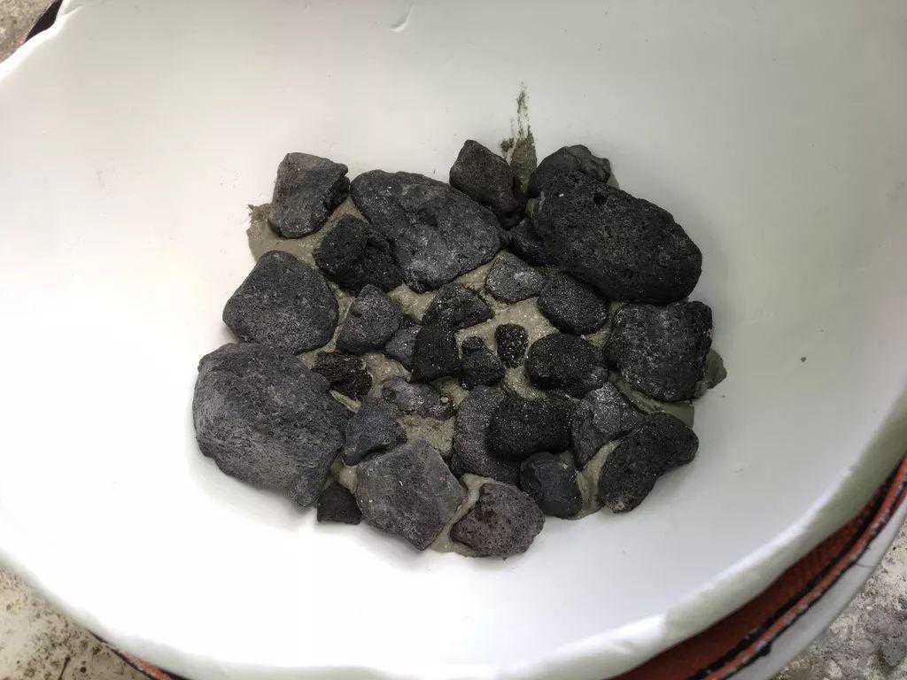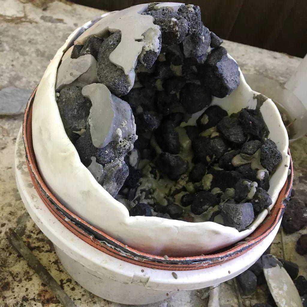 准备一些混凝土,混凝土可以用水泥搭配河沙制作,添加清水搅拌均匀之后就变成了混凝土。接着就将混凝土和石头放入淀粉容器的底部。让它慢慢凝固,接下来在岩石的边上在慢慢填充混凝土和石头,已经凝固的一块混凝土就可以先取出来,在混凝土的底部重新添加水泥和石头。