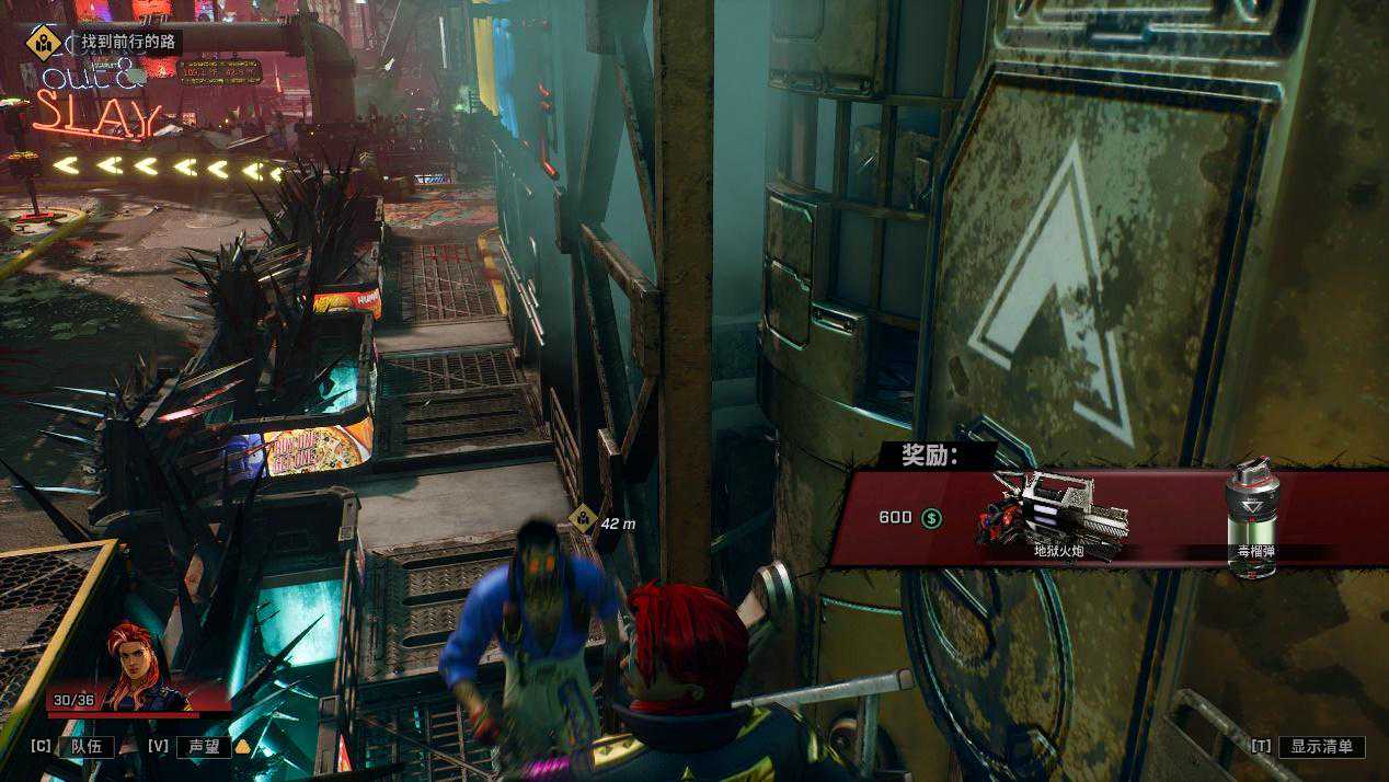 为了充分衬托快节奏的杀戮主题,《枪手真人秀》关卡和谜题设计十分浅尝辄止,稍加思索就能快速通过,哪怕不带脑子也能暴力破解。且游戏把大量装备投放到了物资箱里,几乎每次开箱都能为角色更换武器或者芯片植入物,有效提高了探索驱动力。