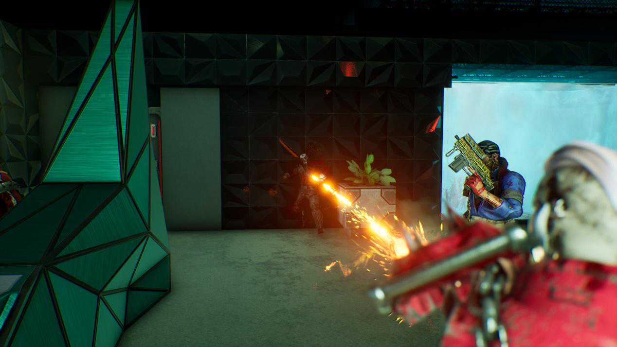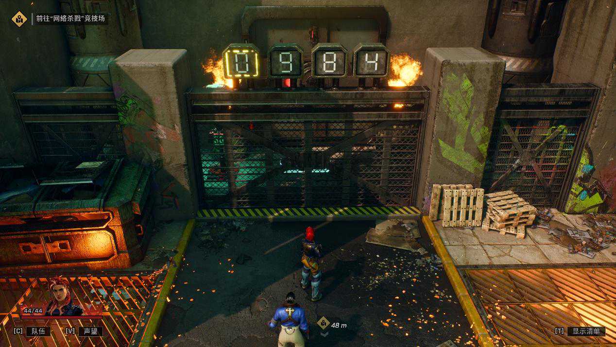 为了充分衬托快节奏的杀戮主题,《枪手真人秀》关卡和谜题设计十分浅尝辄止,稍加思索就能快速通过,哪怕不带脑子也能暴力破解。且游戏把大量装备投放到了物资箱里,几乎每次开箱都能为角色更换武器或者芯片植入物,有效提高了探索驱动力。