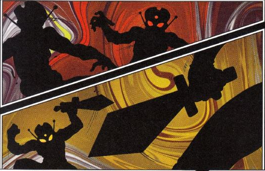 在马特.弗兰克创作的《红超人》漫画中,红超人仿佛是电视中的主演,而电视机前的观众,却是成群的蝉人。但是蝉人观众只是空壳,一触即碎,这又充满了戏谑的味道。