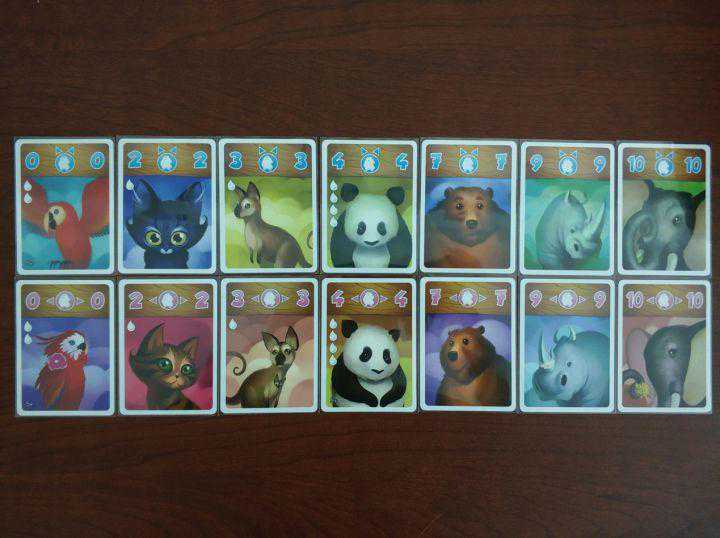 每一种动物都有自身的重量(数字5),以及“泪水”(左边的水滴标志),性别(蓝色为雄性,粉色为雌性)。由于渡轮的载重是有限的,玩家必须对不同的动物做出取舍。三个回合后,拥有“泪水”最少的玩家获得胜利。