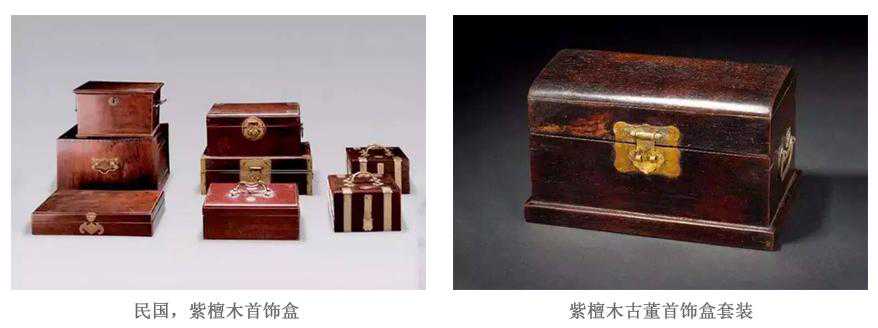 妆匣的种类很多,有嵌宝石的首饰盒。也有非常素雅大气的,比如紫檀木首饰盒。也有盒子可能比首饰都贵重的清代,比如烧蓝嵌玉银首饰盒。更奢华的也应有尽有,铜鎏金珐琅彩嵌珍珠、绿松石古董首饰盒,铜鎏金珐琅彩嵌宝石古董首饰盒。