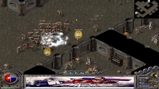 这边一大坨的怪,两个法师炸起地雷,炸起地雷光是相当的爽。这边直接开始捡药,蓝条已经空了,捡了一个到处都亏。现在在玩的同时还是一个小极品版本,小极品的点数可以加四点。玩过复古版传奇的朋友们和玩过小极品版本的朋友们应该都知道,这就是小极品版本的魅力。