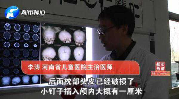近日,中牟一名1岁11个月的孩子,在家玩玩具的时候,不小心“蘑菇钉”钉板扎在了头上!