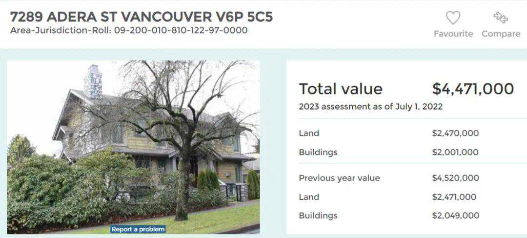 第10名,位于温西Adera街与西57街相交处,在Granville街西边,紧邻ShannonMews社区公园,房屋东西向,后院朝北。2016年建,占地7000平方英尺,房屋面积近5000平方英尺,大地超大独立屋,5卧6卫。政府估价447.1万,挂牌价449.8万。BCAssessment数据显示现业主2021年3月以428万购入。