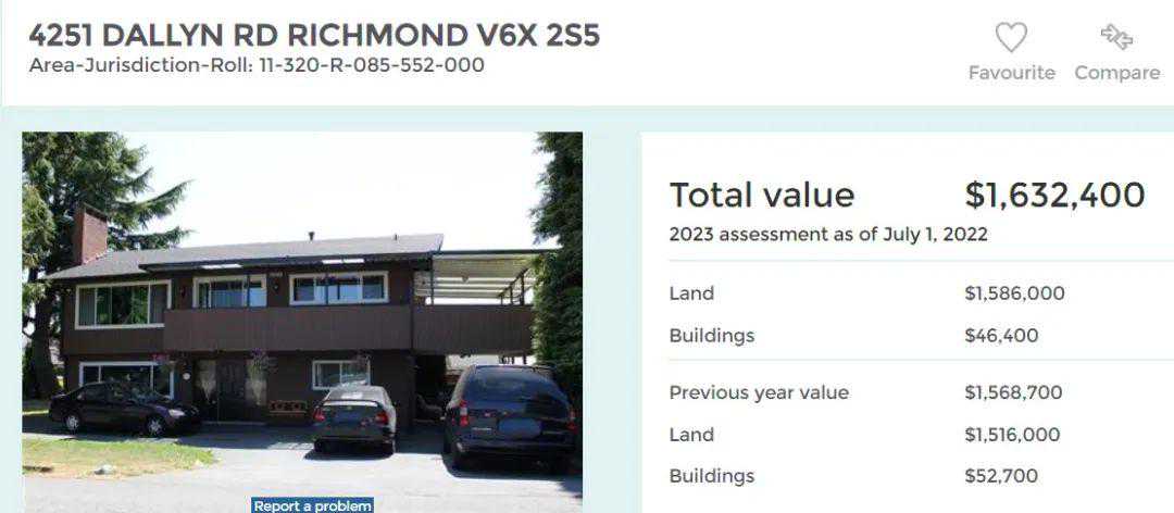 第3名,位于列治文西南1号路东侧、Steveston公路以北的内街,靠近Steveston公路,东西向,后院对着1号路。1980年的老房子,遗产处置房,保养状态一般。占地面积5100多平方英尺,房屋面积2200多平方英尺,中等大小土地中等大小独立屋,6卧3卫。政府估价154.5万,挂牌价149.98万。
