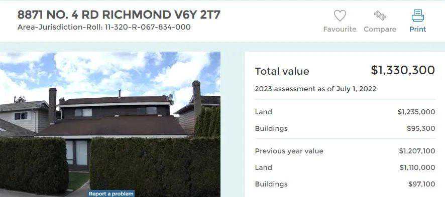 第7名是列治文shell路以东、Cambie以南的内街,转角单位,东西向。1973年建的老房子,2018年做过翻新,占地面积超过8700平方英尺,房屋面积2300多平方英尺,超大地中等大小独立屋,5卧3卫,楼下是独立出租单元。政府估价163.24万,挂牌价167.5万。