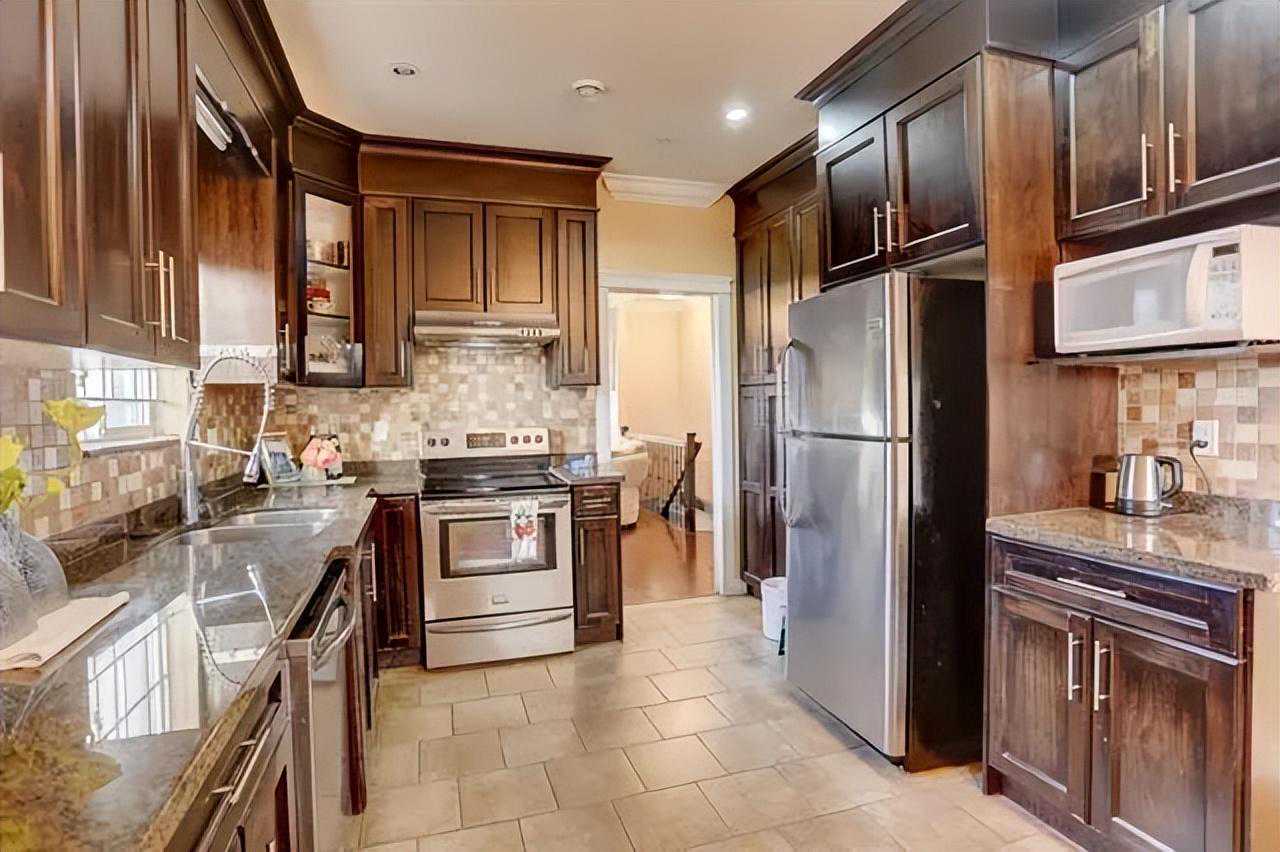本期本拿比的房源,第6名,今年上半年初次挂牌上市时,曾经被媒体疯狂吐槽。位于本拿比SouthSlope社区东部Mckee街,2020年建的次新房,占地面积2014平方英尺,地块宽度仅为16.5英尺,是温哥华标准地块面宽的一半,从高处俯瞰,就像一个细长的长条形建筑,被人吐槽为“鞋盒”;房屋面积1800多平方英尺,4卧3卫布局,但开间小是硬伤,基本没花园,更像是一套城市屋。政府估价158万,挂牌价168.8万。