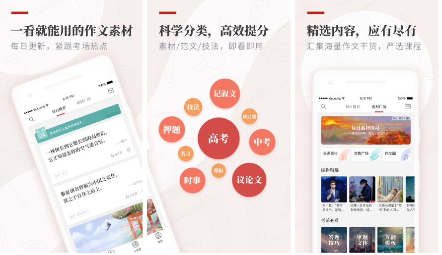 它通过提供免费且优质的作文素材,举办各类创作活动,并提供良好的文学同好者社交圈子,来吸引各类想要进行文学素养提升、素材积累的用户。各类素材按照不同的分类标准被梳理成了各种合集,在这里轻松地找到自己想要寻找的素材。