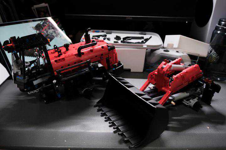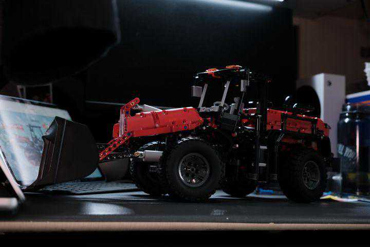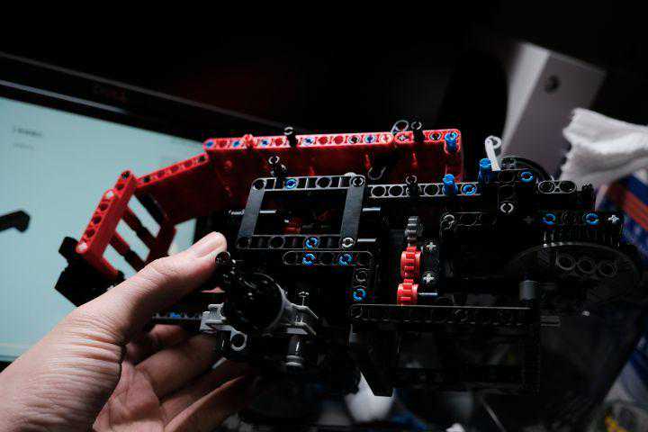 不过整体拼搭过程还算顺利,没有出现少件的情况,而且有几处设计让我印象比较深刻。一是传动装置把车轮悬挂做了一定还原,甚至让车有了一定的“越野”能力;二是铲斗通过三个连杆还原了现实装载机的液压装置,让铲斗更加灵活;三是方向盘通过齿轮联动车轮,乐趣提升。